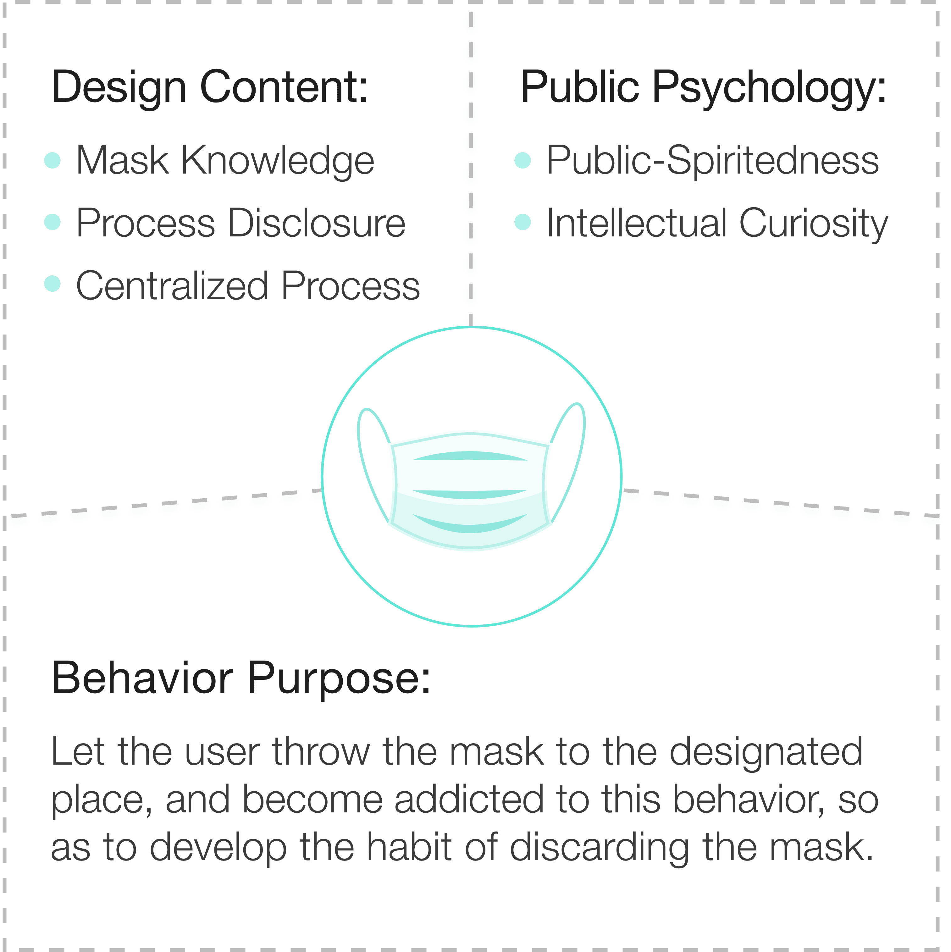 Public awareness of sustainability is stimulated through the offline mask processing devices integrated with an online app that discloses the process and creates incentives fitting the hook model. In phase II, NFT is introduced to engage and motivate users.